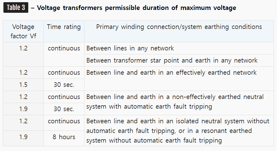 (접지된 시스템인지 비접지 시스템인지에 따라 적용되는 전압 계수가 다릅니다. 따라서 적용되는 시스템을 확인한 후 사용될 계기용 변압기의 전압 계수를 결정해야 합니다.)