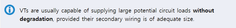 (계기용 변압기는 대체로 2차 배선이 적정한 굵기로 제공되면 성능 저하 없이 큰 전위 회로 부하들을 공급할 수 있습니다.)